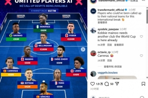 體育資訊10月11日訊 德轉(zhuǎn)列出落選本期國(guó)家隊(duì)的最貴陣容,總價(jià)高達(dá)6.77億歐。