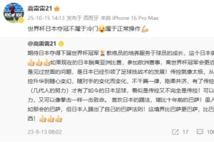 體育資訊10月15日訊 昨日的麒麟杯,日本主場讓二追三逆轉(zhuǎn)擊敗巴西。今日,前國腳高雷雷發(fā)文再次談到日本足球。