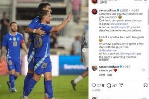 麥卡利斯特社媒曬出比賽照片,并寫道:“以兩粒進球結束了積極的國際比賽日之旅,與國家隊伙伴們共度數(shù)日時光總是令人感到愉快?!?/p>