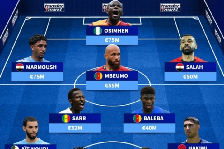 前鋒:奧斯梅恩(7500萬歐)、馬爾穆什(7500萬歐)、姆伯莫(5500萬歐)、薩拉赫(5000萬歐)
