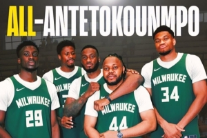 相關(guān)鏈接→美媒曬五人全是字母哥陣容:踢足球的大哥也來(lái)湊數(shù)了