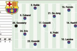 體育資訊10月18日訊 北京時(shí)間今天晚上,巴薩將在西甲第9輪比賽中主場(chǎng)對(duì)陣赫羅納,巴薩多名進(jìn)攻端球員無(wú)法出戰(zhàn)此役,《阿斯報(bào)》預(yù)測(cè)了巴薩本場(chǎng)比賽的首發(fā)陣容。