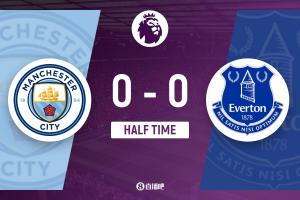 上半場傷停補(bǔ)時(shí)2分鐘,半場結(jié)束,曼城暫0-0埃弗頓。