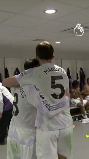 賽后馬奎爾接受完采訪回到更衣室,曼聯(lián)全隊(duì)熱烈歡迎了這位進(jìn)球功臣,為他送上鼓掌和拍頭祝賀,隊(duì)長(zhǎng)B費(fèi)更是搞怪慶祝。