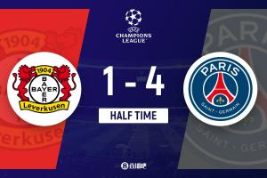 體育資訊10月22日訊 北京時間10月22日凌晨3時,歐冠聯賽階段第3輪,巴黎做客拜耳競技場對陣勒沃庫森。上半場,帕喬首開紀錄,隨后扎巴爾尼送點,格里馬爾多罰丟點球,安德里希肘擊犯規(guī)被紅牌罰下,隨后扎巴爾尼犯規(guī)領到紅點套餐,阿萊克斯-加西亞點射扳平,杜埃雙響、克瓦拉茨赫利亞傳射。半場戰(zhàn)罷,巴黎暫4-1領先勒沃庫森。