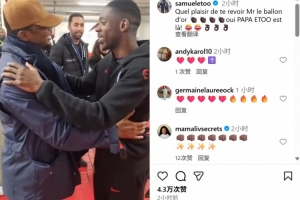 體育資訊10月22日訊 埃托奧在個人社媒曬出與巴黎球員登貝萊見面的視頻,兩人相擁致意,相談甚歡。