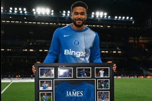 里斯-詹姆斯在本場比賽達(dá)成切爾西生涯200場里程碑,他在賽前也展示了俱樂部為其贈送的紀(jì)念相框,主體為印有200字樣的他本人的球衣,周邊則是包括捧得世俱杯和歐冠在內(nèi)的高光時刻。