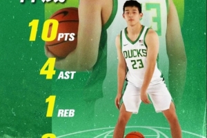 北京時(shí)間今天上午,林葳在俄勒岡大學(xué)vs猶他大學(xué)的季前熱身賽中迎來NCAA首秀。