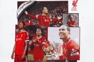 利物浦官推也曬出紀(jì)念海報(bào),并配文:“作為我們隊(duì)長(zhǎng)的第150場(chǎng)比賽,范戴克迎來(lái)里程碑之夜?!?/p>