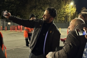 此前備受詬病的主帥阿莫林也在賽后獲得追捧,在比賽結(jié)束兩小時(shí)后仍然在為曼聯(lián)球迷們簽名合影,他在拿起手機(jī)自拍時(shí)也露出了開心的笑容。
