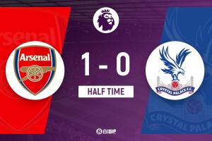 上半場傷停補(bǔ)時(shí)2分鐘,半場結(jié)束,阿森納暫1-0水晶宮。
