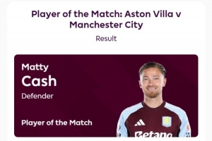 據(jù)賽后英超官方的消息,打進(jìn)制勝進(jìn)球的卡什當(dāng)選此役全場最佳球員,在評選中獲得58%的投票。