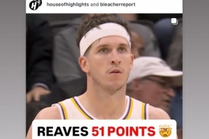 比賽最后時(shí)刻,拉拉維亞快攻被帽,使得里夫斯沒能夠獲得50分三雙;對(duì)此,他賽后在INS轉(zhuǎn)發(fā)了里夫斯的數(shù)據(jù),并寫道:“我的錯(cuò)@里夫斯???♂?。”