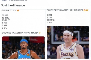 賽后美媒露天看臺曬出了里夫斯的數據但沒寫上罰球數據,雷霆隨隊記者Clemente Almanza曬出了此前亞歷山大對步行者砍下55分的比賽數據(有寫上罰球罰球),改記者寫道:“發(fā)現了區(qū)別?!?/p>