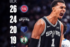體育資訊10月28日訊 歐媒BasketNews報道,賽季至今文班出場三場比賽,共計送出18次封蓋,場均可以貢獻6次封蓋。