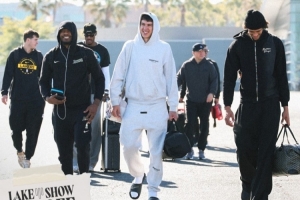 體育資訊10月29日訊 今日,湖人官推曬出一組球隊(duì)出征客場的登機(jī)照。