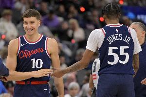 對此,快船記者Law Murray發(fā)推寫道:“在哈登、萊昂納德、祖巴茨身邊搭配博格丹/巴圖姆、瓊斯/鄧恩的8.5分鐘里,勇士占據(jù)絕對優(yōu)勢,比分是27-14。之后快船換上了科林斯和大洛。”
