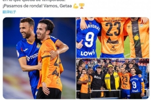 “祝巴爾德莫羅本賽季剩余比賽好運(yùn)。我們晉級(jí)了!加油,赫塔費(fèi)!”