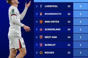 英超本賽季至今,各項賽事紅牌榜: