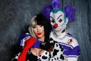 維尼修斯打扮成紫色的小丑,女友弗吉尼亞則cos了迪士尼動(dòng)畫(huà)《101忠狗》中的經(jīng)典反派角色庫(kù)伊拉,一同出cos的還有她與前夫的三個(gè)孩子。