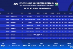 體育資訊10月31日訊 中國足協(xié)公布了中超第29輪裁判選派名單,其中傅明執(zhí)法海港vs浙江,沙特裁判穆罕默德-薩米執(zhí)法海牛vs三鎮(zhèn)。