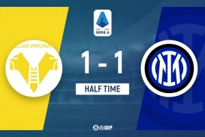 傷停補(bǔ)時(shí)2分鐘。上半場(chǎng)比賽結(jié)束,國(guó)際米蘭1-1維羅納。