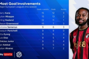 體育資訊11月2日訊 天空體育盤點了本賽季歐洲主流聯(lián)賽球員參與進(jìn)球榜(進(jìn)球+助攻),以下為具體榜單(只統(tǒng)計聯(lián)賽):