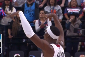 GIF-阿德巴約中投打中 熱火開局12-2打停快船