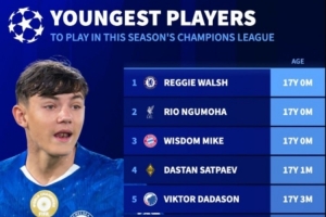 體育資訊11月5日訊 本賽季,歐冠賽場(chǎng)上一批年輕球員有望嶄露頭角,德國(guó)轉(zhuǎn)會(huì)市場(chǎng)盤(pán)點(diǎn)了各隊(duì)在歐冠中最年輕球員排行。