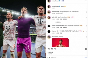 體育資訊11月5日訊 拜仁在本輪歐冠焦點戰(zhàn)2-1力克巴黎,諾伊爾在賽后通過社媒慶祝勝利。