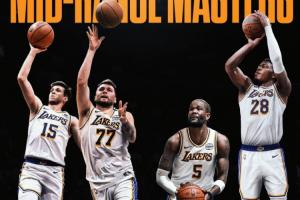 本賽季至今湖人有四名球員中投命中率在聯(lián)盟前十(至少出手30次)。