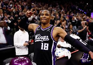 GIF-蒙克上籃 威少與場邊球迷慶祝