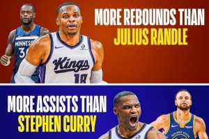 威少目前場(chǎng)均得分高于小薩(15.0>14.5)、場(chǎng)均籃板高于蘭德爾 (7.1>6.9)、助攻比庫(kù)里多(5.6>4.3)