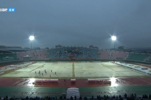 本場比賽,延邊龍鼎主場積雪嚴(yán)重,草坪都被染成了白色。