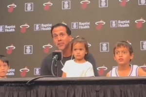 斯波還表示,熱火的所有成員都提供了支持,一些球員的妻子和女友已經(jīng)開始著手幫助孩子們(some of the wives and girlfriends of players on the team are already busy trying to help the kids)——他的孩子們周五仍然正常上學(xué)——這給了他們一些驚喜。