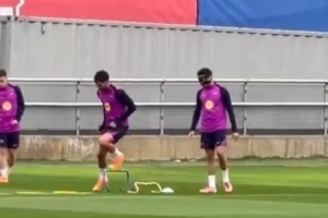 David Ibá?ez在社交媒體曬出巴薩訓(xùn)練視頻,并配文寫道:“巴薩今日進(jìn)行訓(xùn)練,備戰(zhàn)對(duì)陣塞爾塔的比賽。埃里克-加西亞佩戴面具訓(xùn)練,克里斯滕森明日也可能隨隊(duì)出征?!?/p>