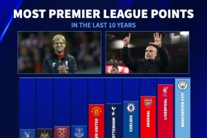 近10年英超總積分排名: