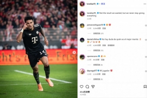 他也在賽后通過社媒曬出自己的慶祝照并配文:“這并非我們想要的結(jié)果,但我們從未停止全力以赴?!蓖瑯釉Я^拜仁的國家隊(duì)隊(duì)友J羅也現(xiàn)身評論區(qū)并留下鼓勵(lì)的表情符號(hào)“???????”。