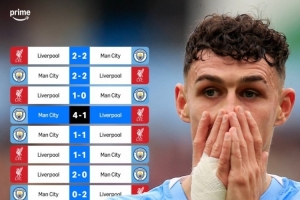 據媒體統(tǒng)計,近8次在英超對陣利物浦,曼城僅取勝1場,具體戰(zhàn)績1勝4平3負。