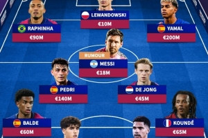 前鋒:拉菲尼亞、萊萬、亞馬爾