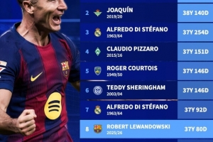 8、萊萬(wàn)(巴薩,2025-26賽季):37歲80天