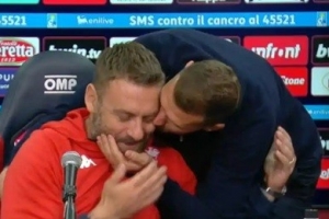 賽后德羅西舉行了新聞發(fā)布會,而就在他接受采訪時,佛羅倫薩前鋒哲科進(jìn)入發(fā)布會現(xiàn)場,并且抱住德羅西連親幾口,哲科還說“祝你好運(yùn)”。哲科和德羅西過去曾是羅馬隊友,兩人關(guān)系很好,盡管這次作為對手相遇,但哲科還是以這種方式和德羅西打招呼。
