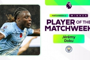 體育資訊11月11日訊 英超官方消息,經(jīng)投票曼城邊鋒多庫當(dāng)選本輪最佳球員。
