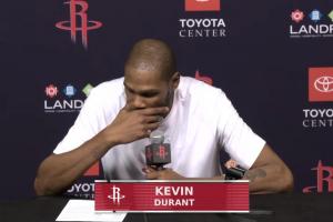 賽后,杜蘭特參加新聞發(fā)布會(huì),接受了記者的采訪(fǎng)。