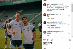 體育資訊11月15日訊 阿根廷新晉國腳帕尼切利更新社媒動態(tài),曬出與梅西的合照。