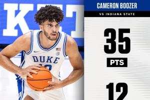 體育資訊11月15日訊 NCAA常規(guī)賽,杜克大學(xué)100-62大勝印第安納州立大學(xué)。