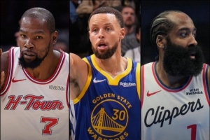 體育資訊11月16日訊 火箭隨隊(duì)記者曬出一項(xiàng)數(shù)據(jù)顯示,杜蘭特、庫里、哈登目前都場均25+且真實(shí)命中率60%+,具體如下:
